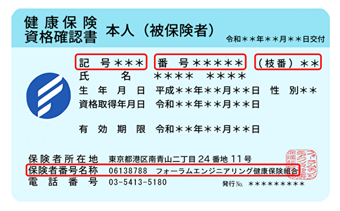 資格確認書でご自身の記号・番号・枝番や加入健康保険の保険者番号を確認できます。